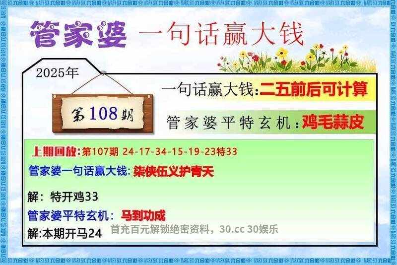 111期: 【财运亨通】【管家婆一句话赢大钱】财富永远都是给予那些善于抓住机遇的人!财富就是属于你的!